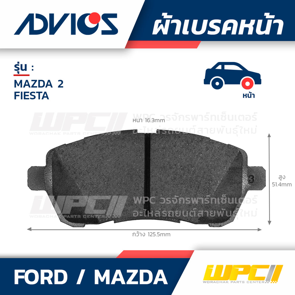 ADVICS ผ้าเบรคหน้า MAZDA 2 ปี10-ON, FIESTA ปี14-ON